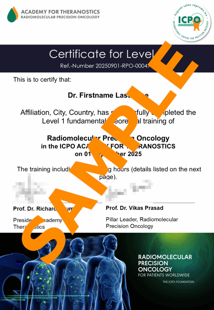 The opportunity for international certification offered by the Academy serves to validate the training achievements. Graduates of the ICPO Academy receive a reputable certificate, issued by the ICPO Foundation, together with the Faculty of the Academy, confirming their successful participation and comprehensive knowledge in the fields of Radio Precision Oncology, Medical Physics, Radiochemistry or Nursing & Patients Management.